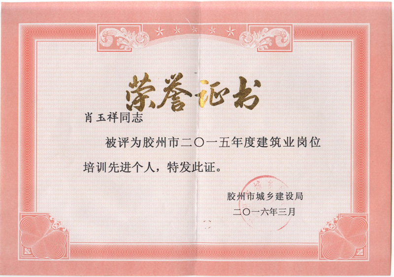 肖玉祥-膠州市建筑業(yè)崗位培訓(xùn)先進(jìn)個(gè)人