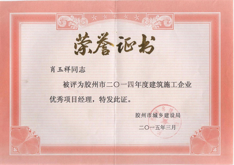 肖玉祥-膠州市建筑施工企業(yè)優(yōu)秀項(xiàng)目經(jīng)理